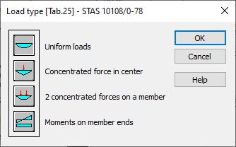 The dialog box below enables definition of a load pattern for the analyzed beam.
