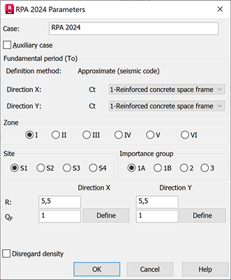 To complete the seismic analysis according to the rules given in a code, define the following parameters: