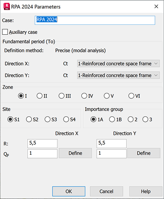 The approximate fundamental natural period T0 is calculated according to the RPA 2024, clause 4.2.4. using the empirical formula (4.4) depending on the case is as follows: