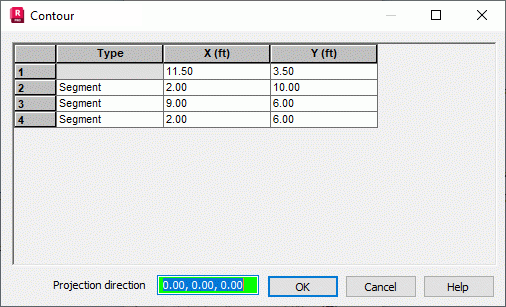 Open the Contour dialog, which lets you edit contours that define panels and contours to which a planar load is applied, by clicking