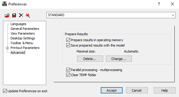 Preparation of Results is designed for great structure models when large resources are required to obtain results. It is possible to prepare results beforehand when work does not require intensive processor and memory usage.