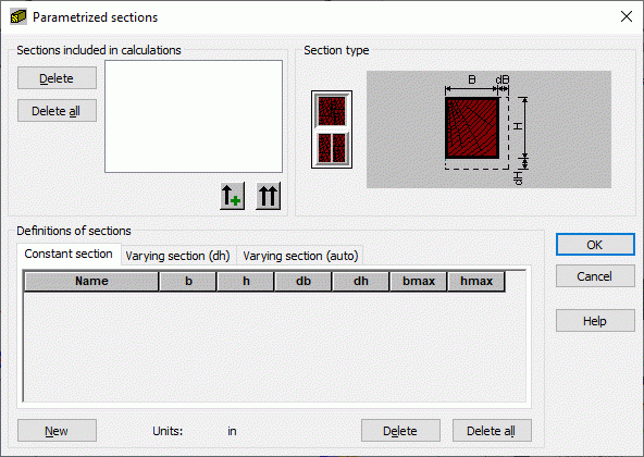 Click the Par. sections button in the Definitions dialog (Groups tab for timber sections), the following dialog displays: