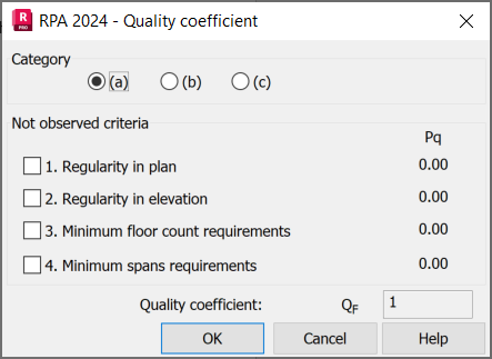 Parameters of a structure seismic analysis depend on a seismic code used during calculations of a structure influenced by seismic impact. Select Algerian seismic code RPA 2024 in the New Case Definition dialog or click Parameters in the Analysis Type dialog.