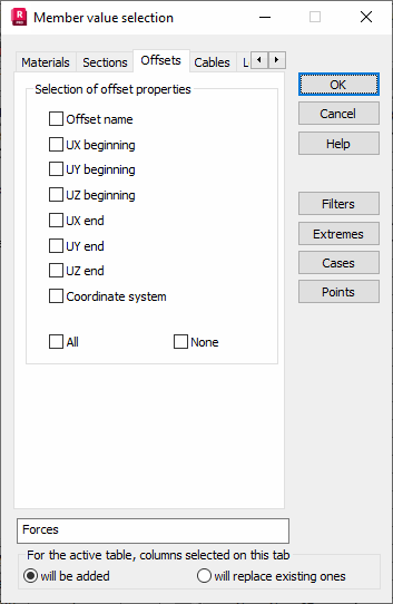 Select the Offsets tab in the Columns dialog to select offset values for presentation.