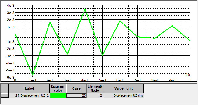 After defining diagrams and transferring them to the Presented diagramspanel, click Apply to display selected diagrams in a window. An example of a diagram for a time history analysis case is in the following image.