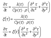 When it is required to know the current temperature to determine coefficients not described by equations, the approximation from previous time steps is applied (forward difference).