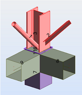 Fig. 5 The column base is loaded by elements: 1, 2 and 3, and is supported by elements: 7, 8 and 9.