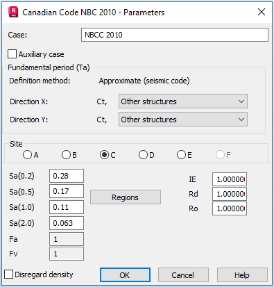 The parameters of the seismic simplified analysis according to the equivalent lateral force method depend on a seismic code and a method of defining the values of the fundamental periods selected in the Seismic Analysis dialog.