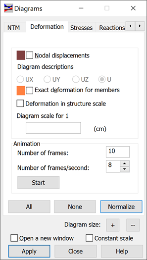 You can select how to display structure deformation because of loads in this dialog.