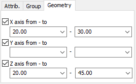 Here you can determine positions of the beginning and end structure axes (in all directions of the coordinate system), between which objects are to be selected.