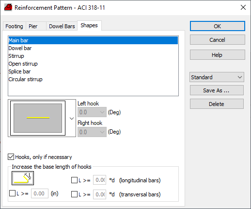 The Save As option allows you to reuse a set of reinforcement pattern parameters. This set is saved to your current user directory. You can reuse this set for the other element in the Reinforcement Pattern dialog or assign it to the selected element (or selected elements of the same type) in the RC Component Inspector.