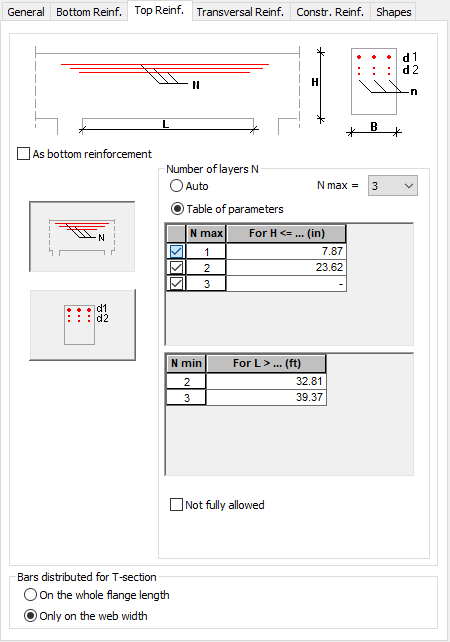 In addition, you can define the reinforcement distribution for T-shaped cross-sections (along the flange width or web width).