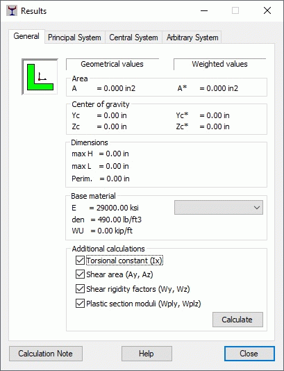 This option begins the calculation of geometric properties of the defined solid section.