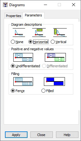 - Fence - when selected, the quantities diagrams from the Diagrams dialog will be fence type. The diagram is filled with ordinates at every step)