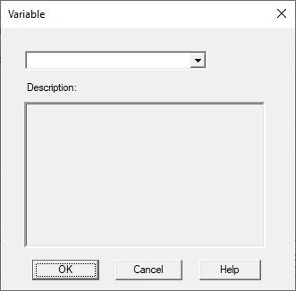 The Variable (Function, Method) dialog box presented below allows you to select the variables (functions, methods) to be used in a plotter drawing. The dialog box may be opened by pressing the Variable (Function, Method) button in the Text properties dialog box.