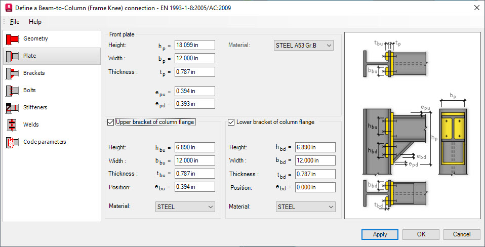 Select Upper bracket of column flange or Lower bracket of column flange to define an additional (upper or lower) bracket of the column flange.