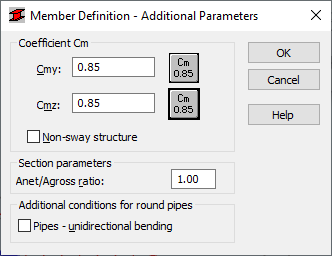 - Coefficients Cmy and Cmz; the values of these parameters are entered in the appropriate edit field. You can also access this parameter by clicking one of the icons and selecting the parameter value in an additional dialog.