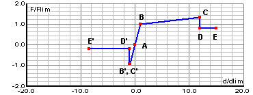 - Points C, D, and E based on FEMA 273 (table 5.8, Braces in tension).