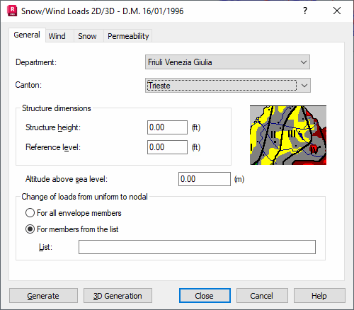 Opening the Snow/Wind Load dialog and clicking the General tab displays the following dialog.
