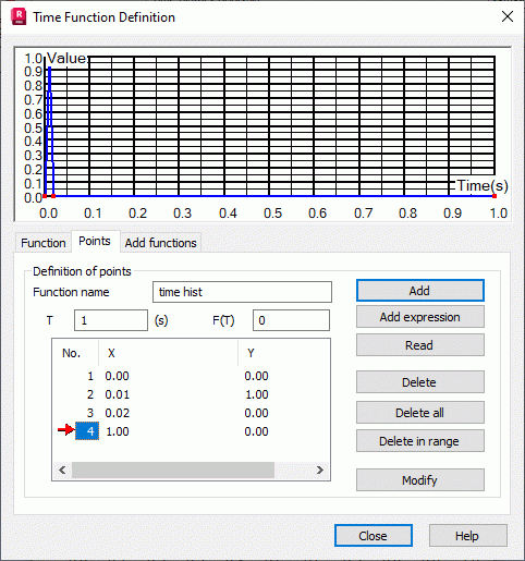 Create a time function in the Time function definition dialog, and then select the Points tab to define the points of the time function.