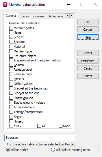 - Shear - members for which the impact of shear forces on structure deformation is considered.