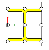 In the dialog, you can determine a shift of a bar's longitudinal axis with respect to section transversal dimensions. You select the axis position by clicking the appropriate selection button in the section drawing. A description of the postion of the bar section displays under the drawing of the bar section, that is, Axis shift and characteristics of the section position describing the value of the axis shift in the local system: