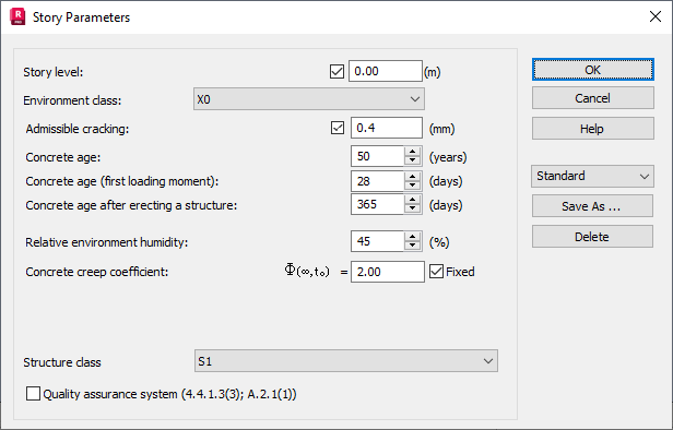 The Story Parameters dialog allows you to define parameters of a story according to the EN 1992-1-1:2004 AC:2008 code.