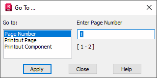In the left panel, select one of the following: page number, printing page and printout components. In the field located to the right, enter the page number or choose the name of the appropriate component from the printout component list.