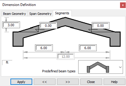 Options in the above dialog box are used to define selected shapes of a beam or to divide a beam into segments.
