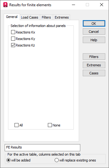 - Reactions KZ - A value of the KZ reaction is displayed. It is represented as a sum (integral) of the elastic ground reaction for a panel on the elastic ground. The value is constant for a whole panel.