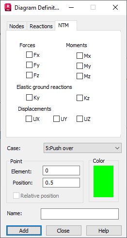 Use this dialog to define diagrams of quantities calculated during pushover analysis.