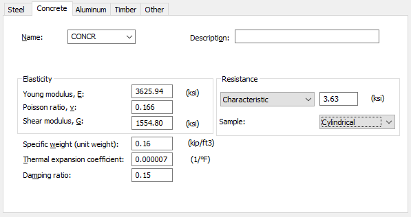 - Damping Ratio - the damping ratio for the defined concrete.