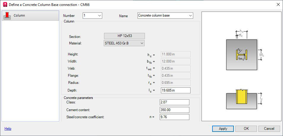 In addition, specify the depth in the column base that the column pier penetrates l c; this value is defined as a distance from the top edge of the foundation to the top edge of the column base plate.