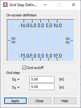 Note: You can also access this dialog and edit the grid step after selecting one of the main commands (definition of elements, for example).