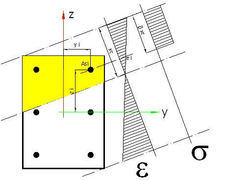 The calculation of the column capacity for biaxial bending proceeds according to the following procedure: