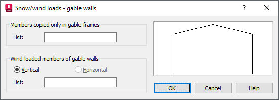 Wind-loaded members of gable walls field - Specify which members of the gable walls (vertical or horizontal) are to be loaded with the wind along the Y axis.
