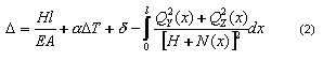 From the equation (2) one can assign the initial cable elongation d essential for obtaining the required force H: