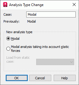 Use this dialog to change the type of analysis to Modal or to Modal analysis recognizing static forces.