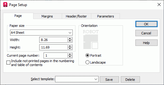 Select the Page tab of the Page Set-up dialog to define basic page set-up parameters.