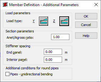 Use this option to define additional code parameters for the steel bar type according to the CAN/CSA-S16.1-94, CAN/CSA-S16-01 + Supp. No.1 (2005), CAN/CSA-S16-09, CAN/CSA-S16-14, and CAN/CSA S16:24 codes. Access the parameters by clicking the More button in the Member definition - parameters dialog.