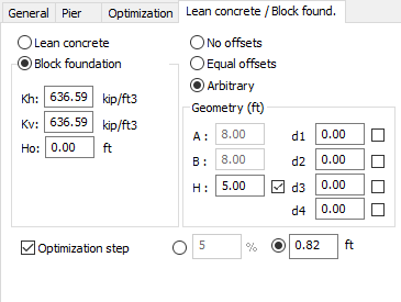 Determines the optimization parameters when the adopted block foundation parameters do not meet the requirements (in particular, the height H is a dimension that is optimized for the block foundation). An optimization method should be chosen.