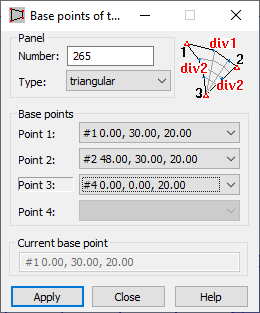 Use this dialog to determine panel points that are the basis for generating a finite element mesh using the Coons' method.