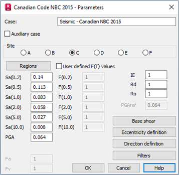 - Select Seismic, choose NBC of Canada 2015 and click OK.