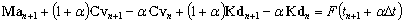 The Hilber-Hughes-Taylor (HHT) method implements numerical damping of higher frequencies without the loss of solution accuracy. A discrete form of the time history equation is as follows.