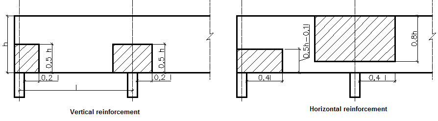 Deep-beam calculations (according to the Polish RC code, apart from the typical horizontal and vertical reinforcement) can generate additional reinforcement zones in the vicinity of supports and in areas where concentrated loads are applied (such as on a distribution area or at a point). This enables the structure to safely carry the stresses concentrating in these areas. To calculate this, the following steps are followed.
