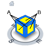 When you use one of the face views to display a model, additional icons display next to the ViewCube: