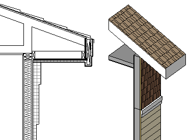 When creating a roof, specify an overhang value to create eaves. After completing the roof, you can align eaves and change their cut and height.