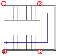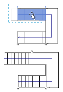 | 5 | Drag the square control on a winder run leg to move the leg. Winder steps are added/removed from the winder legs in the run to maintain the original stair height. |