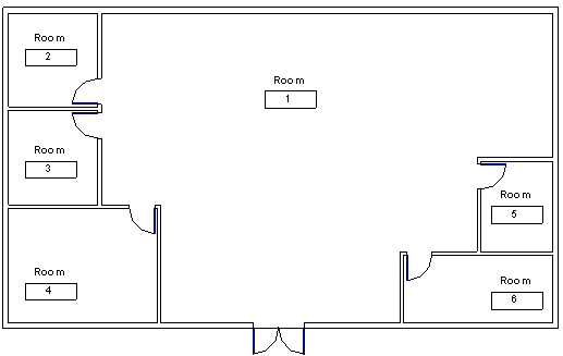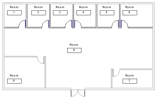 Notice that the same room numbers and names can display in the view, and room tags occupying the same location can have different names and numbers.