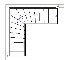 - If positioning the run against a wall or other element, move the cursor near the wall, and notice that the winder stair snaps to position against the wall.